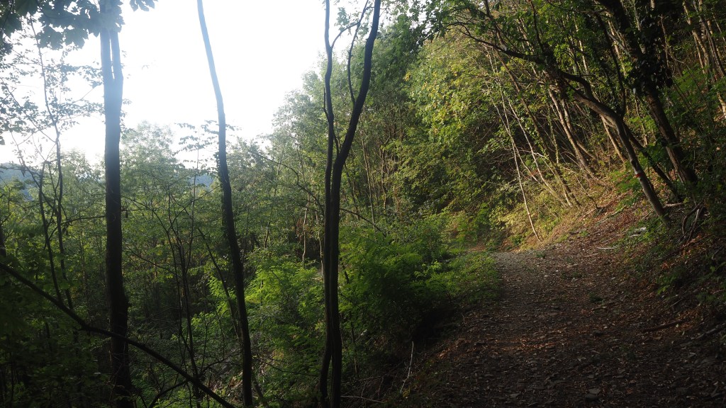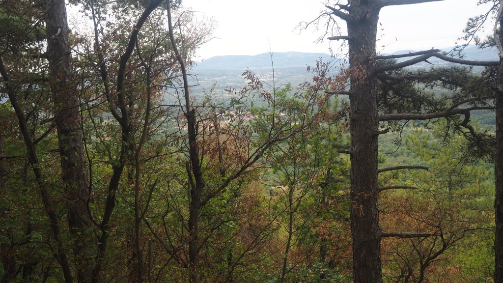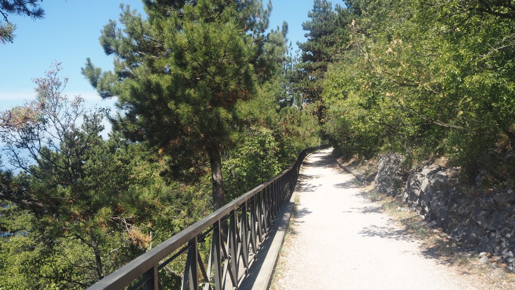 Then there was one final slog up one final hill. The first part was in the full glare of the sun. Thankfully the route then came under the cover of the trees for a bit, before flattening out. Annoyingly though, this climb to Santa Barbara, as it was called, barely gave any decent views, just little snatches of Trieste though the trees, and then as soon as it had climbed up, it was back following the road down again.
