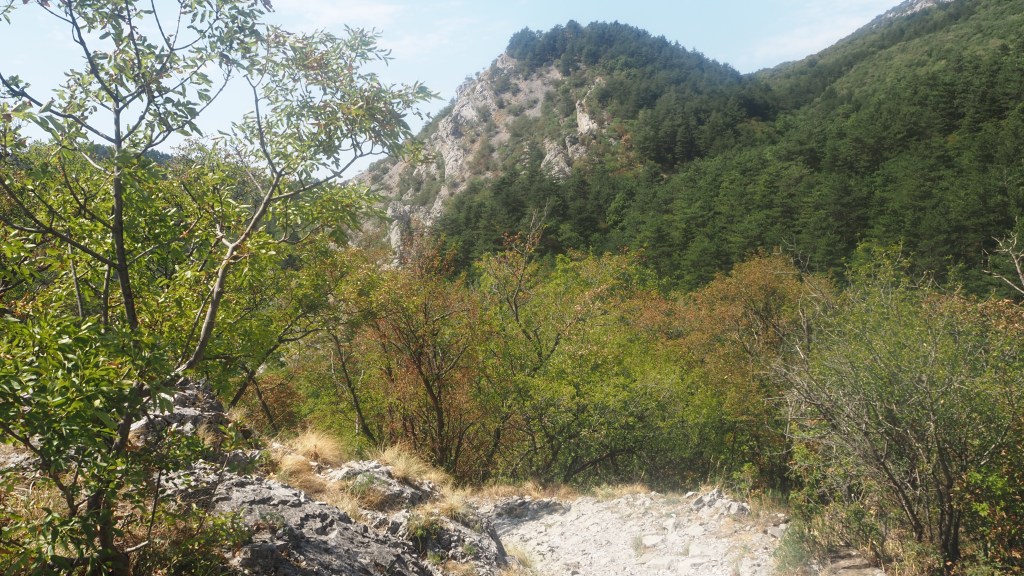First off, was some more woodland walking, going up hill, round the hillside and then back down. Along the way this time in the wood was something I hadn’t seem much of on this trip. Discarded rubbish, but also clothes and rucksacks. Why had they been left? Perhaps they had been stolen? It was a bit of mystery why there would be so many in this particular wood. I hoped it wasn’t anything sinister.